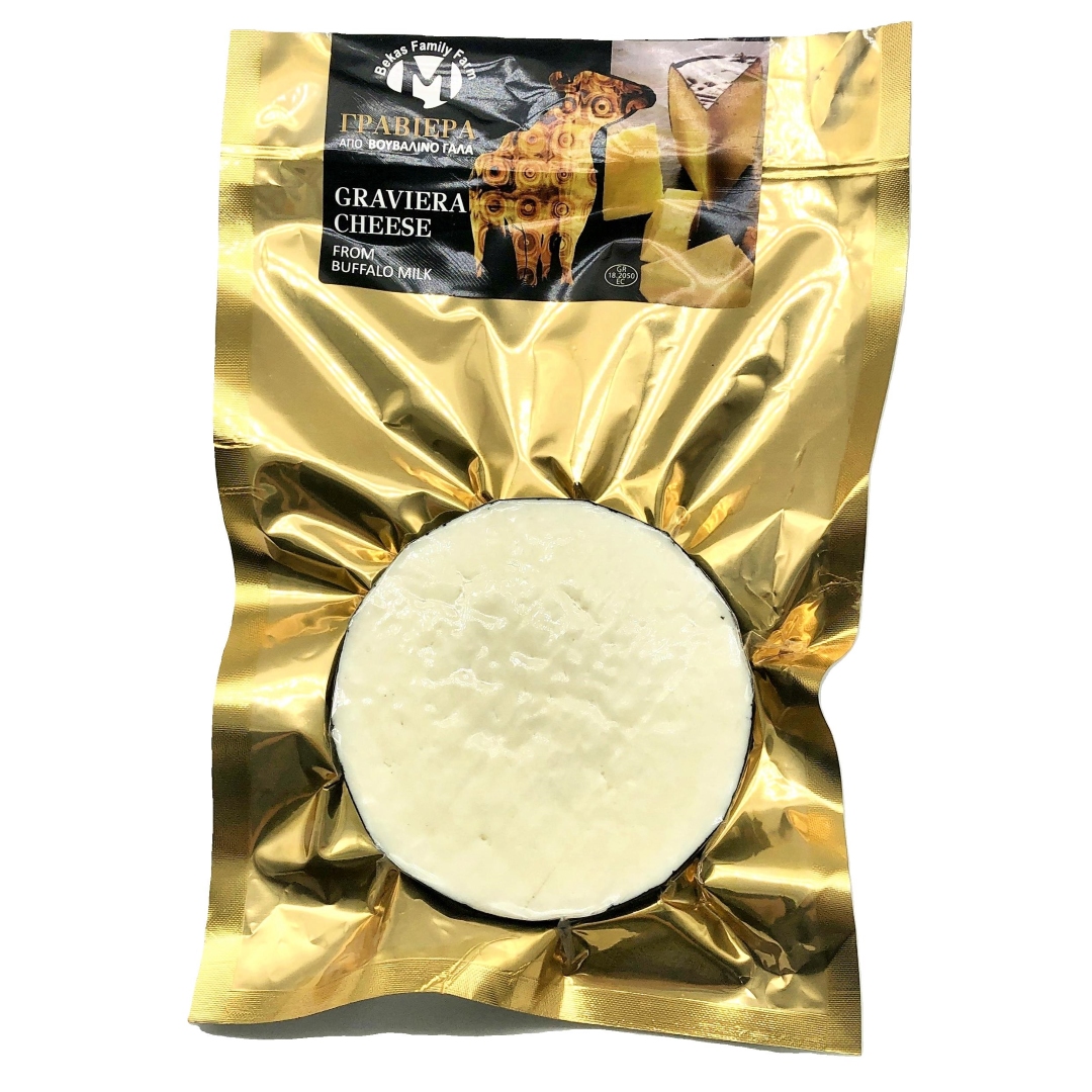 Made from pasteurized buffalo milk. You will find this cheese in delicatessen shops, along with a very good bottle of wine or in a fresh salad at a gastro bar. It is usually accompanied by laudatory comments for its full and slightly spicy taste. Everything you have tried from graviera cheese takes on another dimension when you taste this graviera from buffalo milk. It goes well with any kind of wine, it is ideal with any cold dish. But you will understand its unique rich taste when you let it melt, releasing all its aromas, satisfying even the most demanding palates.