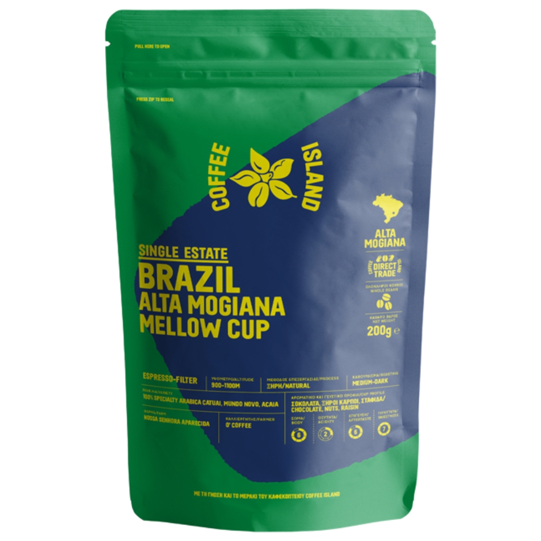 COFFEE ISLAND, 100% Specialty Arabica, Single Estate BRAZIL ALTA MOGIANA MELLOW CUP, Whole coffee beans, Direct Trading, 200g (Best before 18/11/2025