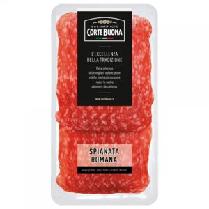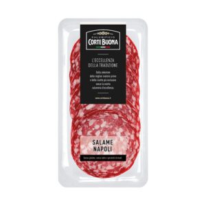 The SALUMIFICIO CORTEBUONA brand originated in the early 90s with the birth of one of the most important players in Italian Charcuterie, Cortebuona of Gazoldo degli Ippoliti (MN), part of the Cremonini Group, a giant in the food industry, both in Italy and worldwide. The investments in marketing communication that followed brought Cortebuona into the limelight, with the famous television advertisements for Prosciutto Cotto Il Supermorbido and Salami Gustovero. Over the following years, the Cortebuona brand followed the various dynamics of the Cremonini Group and the corporate changes, finally stabilizing under the direction of Italia Alimentari SpA (still owned by the Group), which has used it since the beginning of 2000 to date as a brand dedicated to the foreign market, since it transmits the Italian character and the typicality of salami in the world. The brand and all the packaging were restyled in 2012. The use of white and black distinguishes the design of the new line, while the tricolour underlines its Italian character.