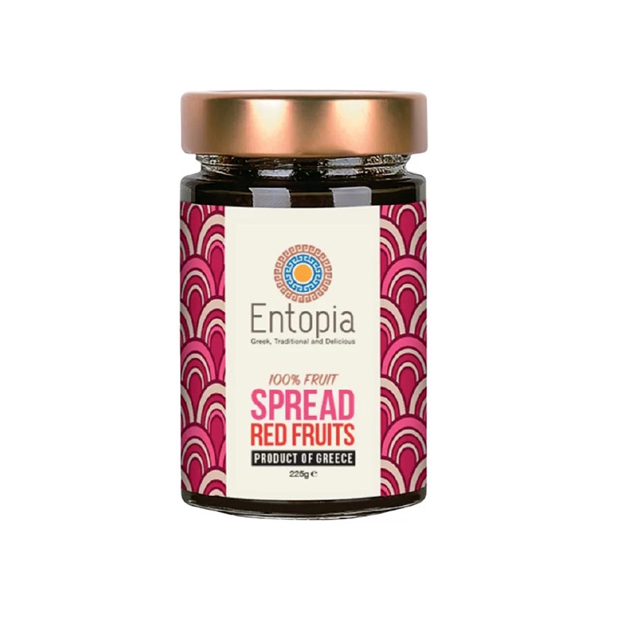 ENTOPIA, Red Fruits Mix Spread (Jam), 100% made from berries & juices, Handmade, No Sugar added, 225g (Best before 31/12/2025)