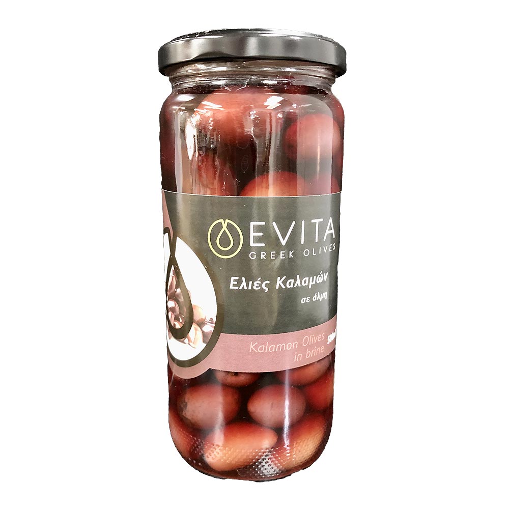 EVITA, Greek Kalamata Olives whole in brine, 500ml (Best before 30/06/2026)