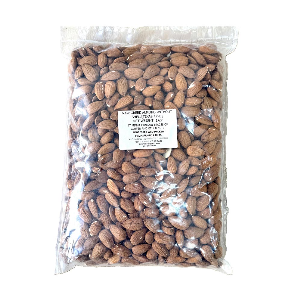 FAMILIA NUTS, Greek Raw Almonds, Medium size (Texas Type), 1000g (Best before 11/2025)