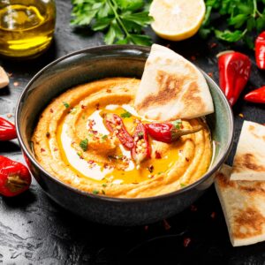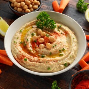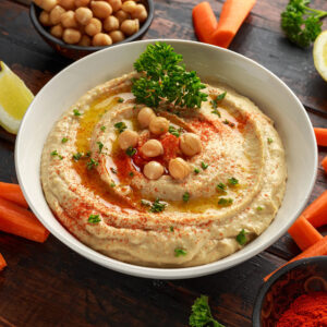 Hummus dip with lemon, made with 100% Greek chickpeas.