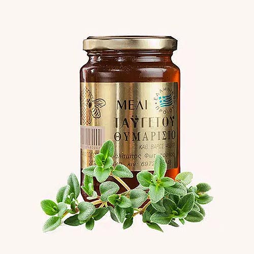 Taygetos Honey is an organic product made by bees from blossoms nectar or from bee secretions. It is a natural, pure product without any process and consists of 180 natural ingredients: minerals, natural fats and organic acids, antibiotics, vitamins, enzymes and other components, which give Taygetos honey its unique flavor.